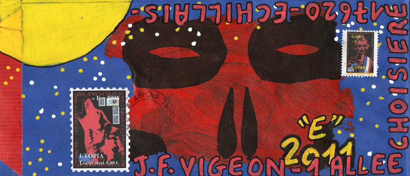 Vous trouverez ici une partie de mes envois vers le monde et les travaux envoyés par des Artistes vers ma boite aux lettres en Utopia. Ce blog recense aussi des projets, des adresses et des liens intéressant les Mailartistes.