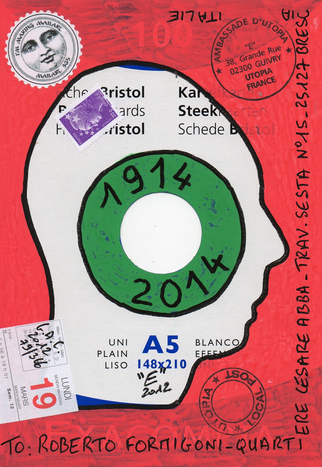 Vous trouverez ici une partie de mes envois vers le monde et les travaux envoyés par des Artistes vers ma boite aux lettres en Utopia. Ce blog recense aussi des projets, des adresses et des liens intéressant les Mailartistes.