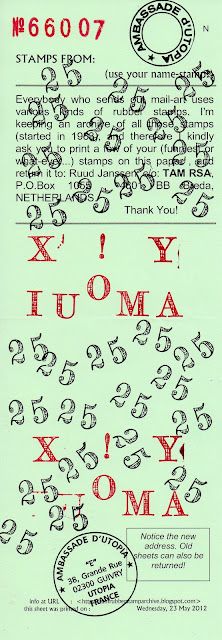 Vous trouverez ici une partie de mes envois vers le monde et les travaux envoyés par des Artistes vers ma boite aux lettres en Utopia. Ce blog recense aussi des projets, des adresses et des liens intéressant les Mailartistes.